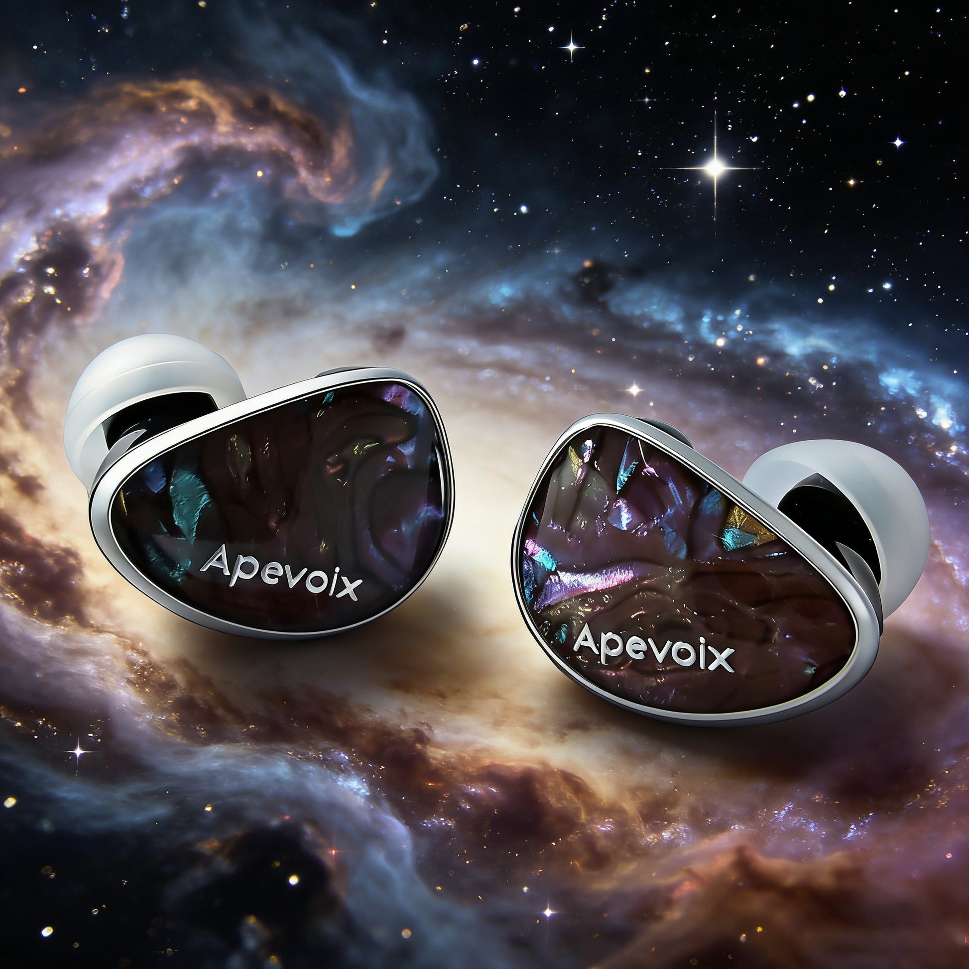 Every Apevoix Nebula is a unique masterpiece. Its faceplate is meticulously hand-painted using a specialized technique that creates a mesmerizing, depth-filled nebula effect. The colors shift and evolve with the light and your perspective, making your personal audio gear a constantly changing piece of cosmic art. This isn't just a finish; it's a statement of craftsmanship and individuality.